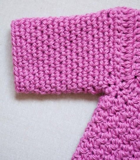 Repeat Rows 2 and 3 till the cardigan is 23cm/9in
