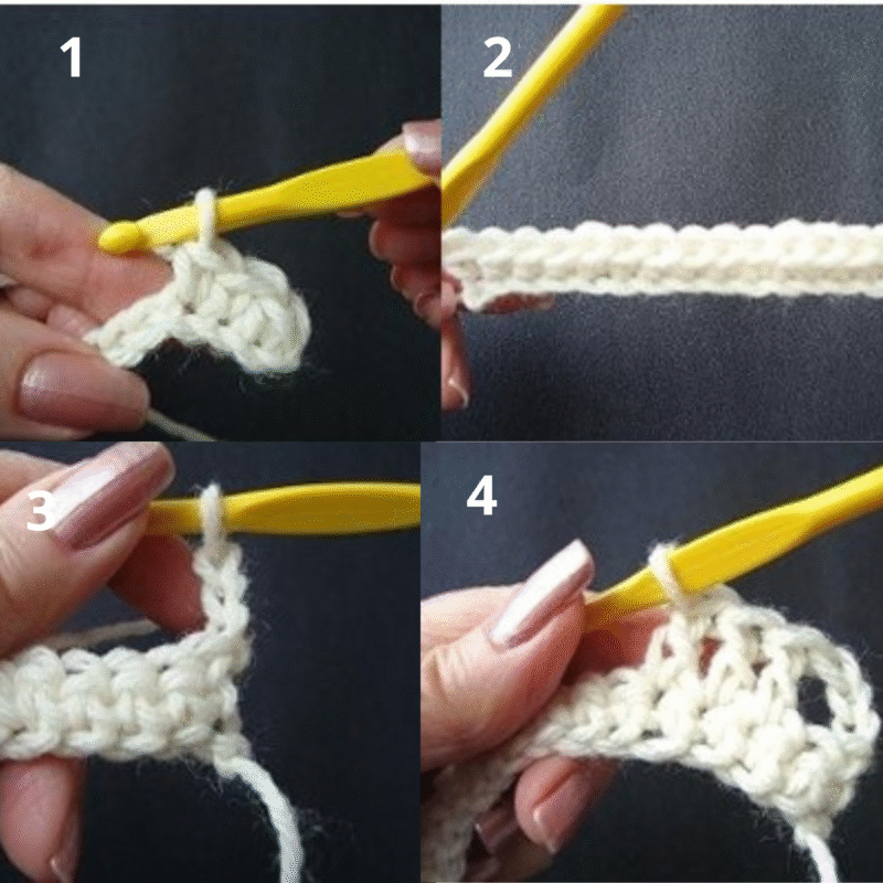 Chain (ch) 1 and flip, sc (single crochet) in every stitch crossways