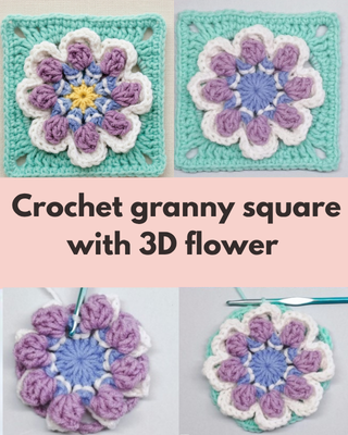 In this video, I show how to crochet a beautiful granny square with a 3D flower in the center step by step. I explain the process in a simple and clear way so it is easy to follow, even for beginners