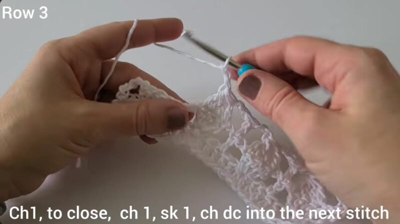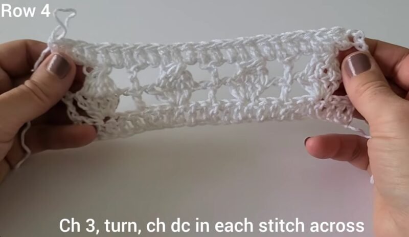 round 4 ch3 turn ch dc in each stitch across