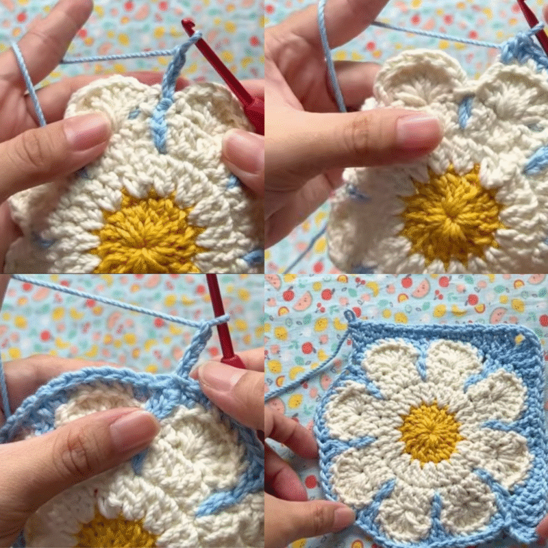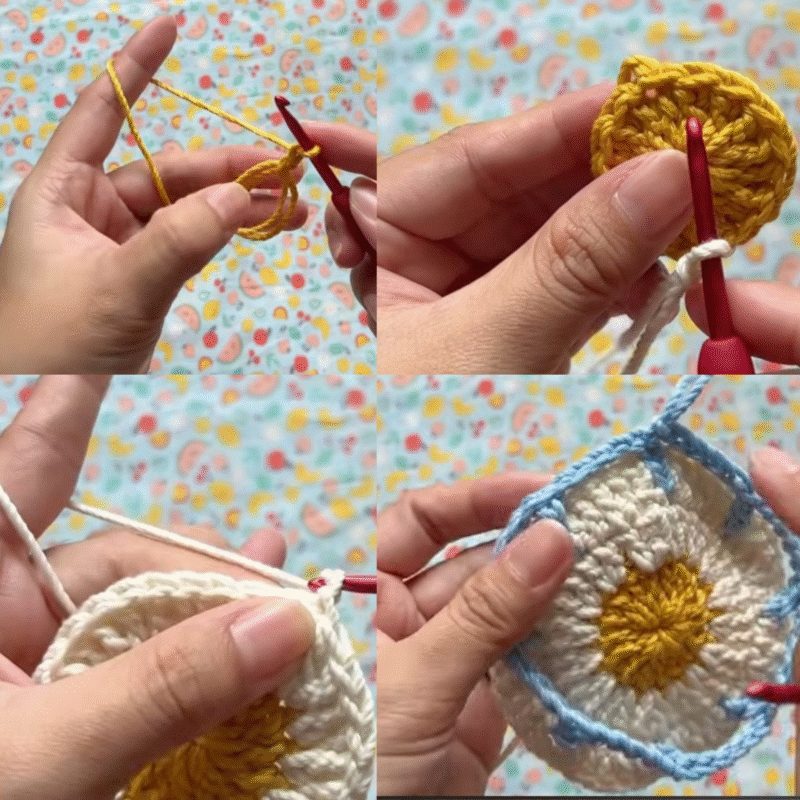 Join white yarn with a sl st to the flower center.