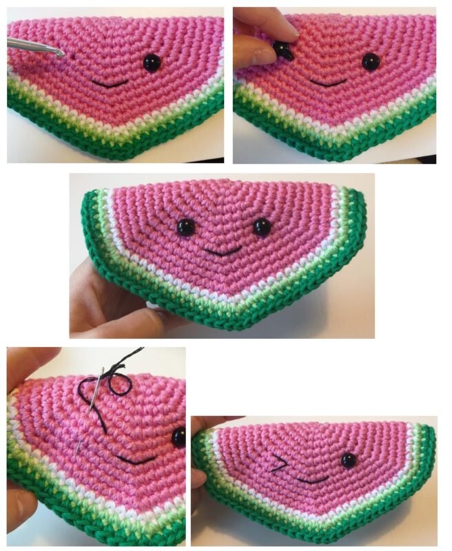 If you want to do the watermelon with the blinking eye, just attach one safety eye and