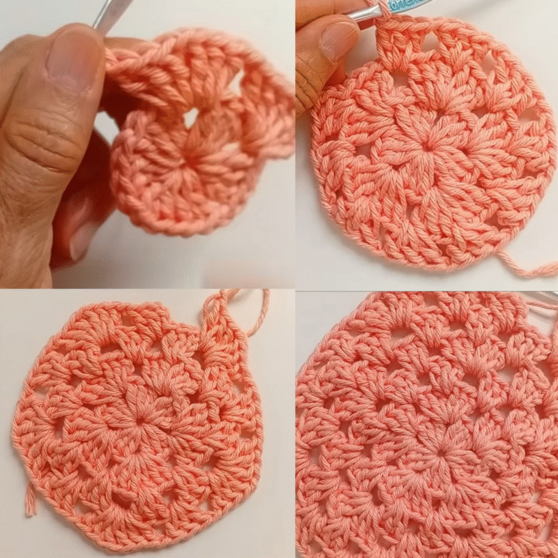 he fifth row is worked without increases, crocheting one block of three double crochets in each chain space, keeping the total at fifteen blocks.