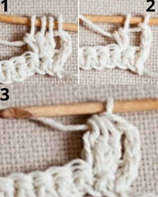 over and draw through all four loops, CL made (photo 3)
