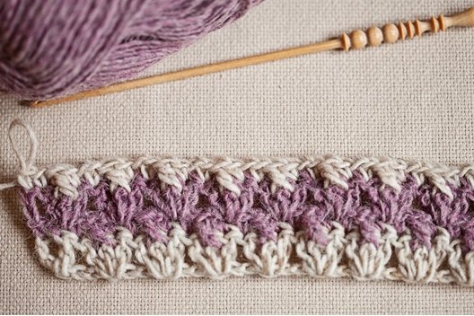 Row 2: with CC, ch1, sc next 2dc,ch1, sc in next dc, FPdc around next dc, sc in next dc, repeat from * to