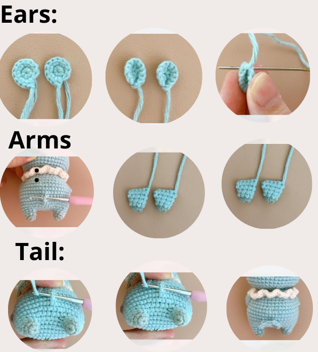 Sew the ears to the head between round 7